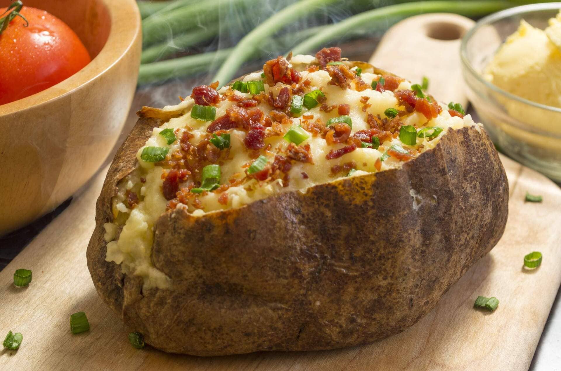 - Rellena las papas con la preparación anterior, puedes ayudarte de una duya. Cubre con el queso y hornea de 5 a 7 minutos para gratinar.